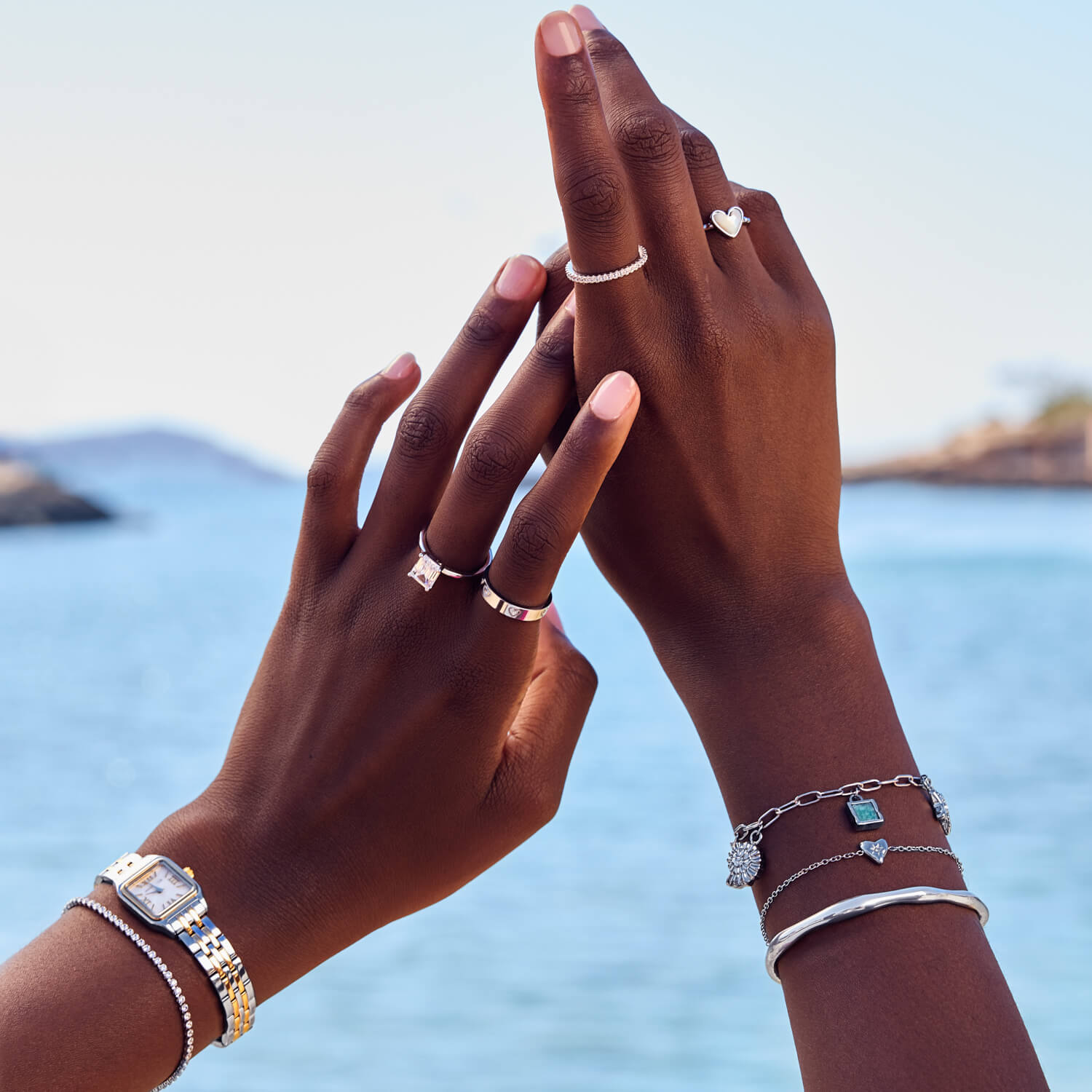 Dreaming of that beachy retreat? Our Ocean Charm Necklace lets you carry a piece of paradise with you. With a luxurious molten texture, each charm is custom-made and one of a kind, just like you. Filled with meaning, designer-inspired details and semi-precious stones, choose from hanging suns, starfish, shells and even protective evil eyes. Stack, layer, build your story, one charm at a time. Plus, with tarnish and waterproof plating, it’s ready for whatever life brings your way.