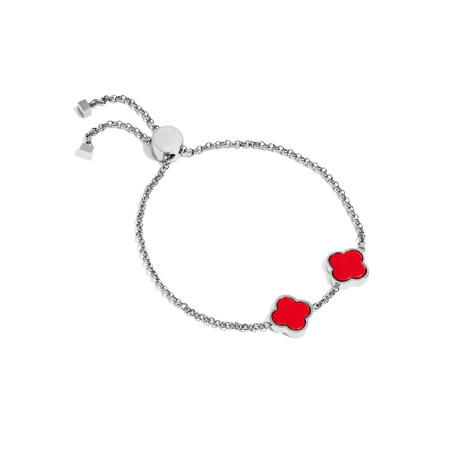 Add a pop of red to your favorite collection. Our bestselling Clover Name Bracelet now comes in a glossy crimson shade, bringing a splash of romance to your lucky stack. Personalize each clover with initials to make it truly yours – or the perfect gift for someone special.