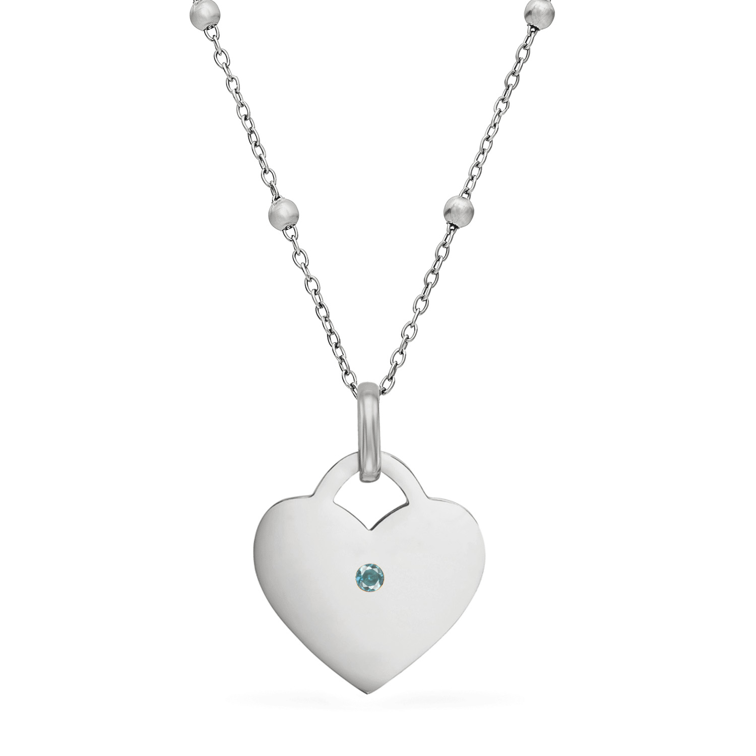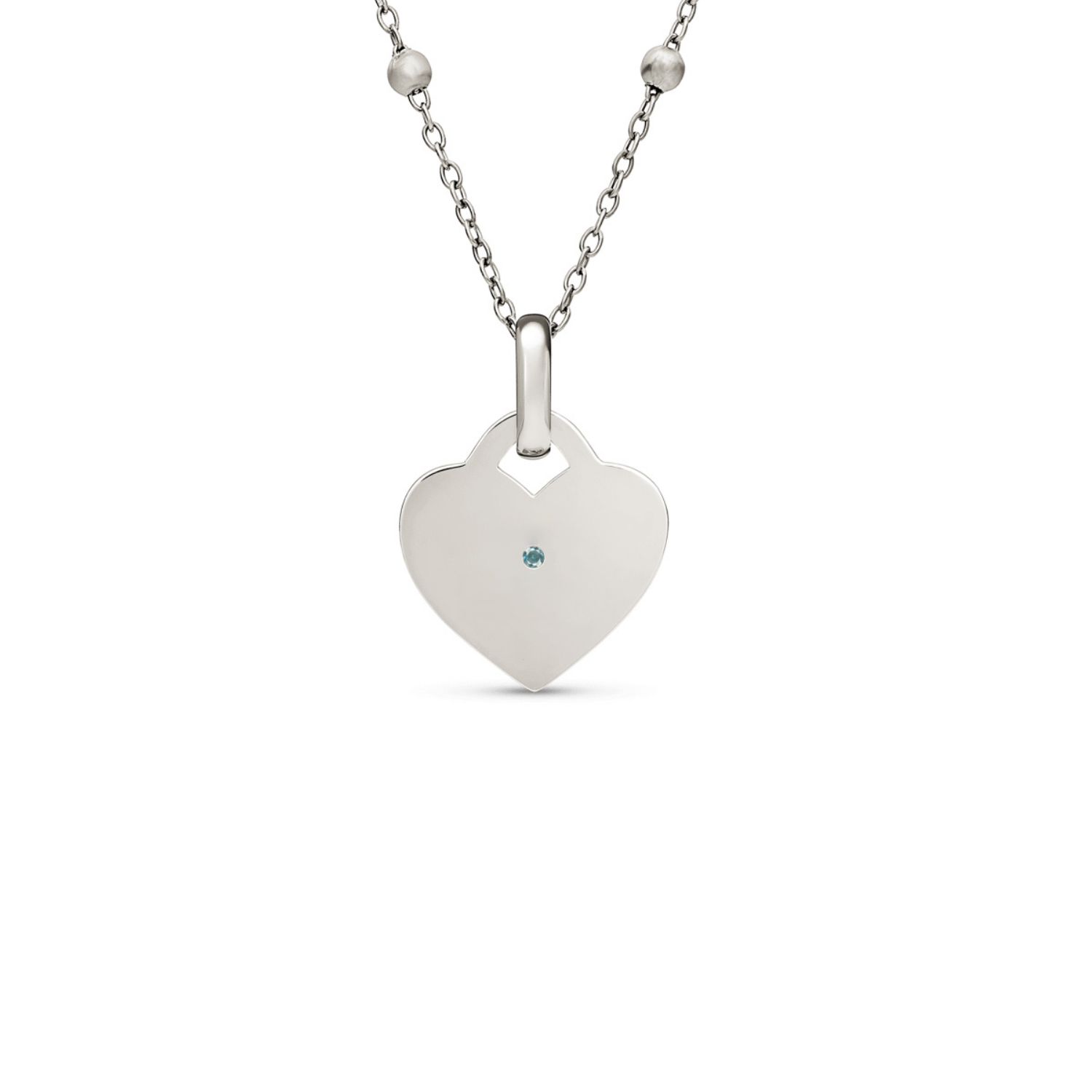 Bridal jewelry with a touch of 'something blue'... say 'I do' to this dainty heart necklace. Featuring a mini blue stone, personalize with love by engraving the pendant with your one and only's name. Or gift it to your bridesmaids as a special keepsake they'll wear again and again...