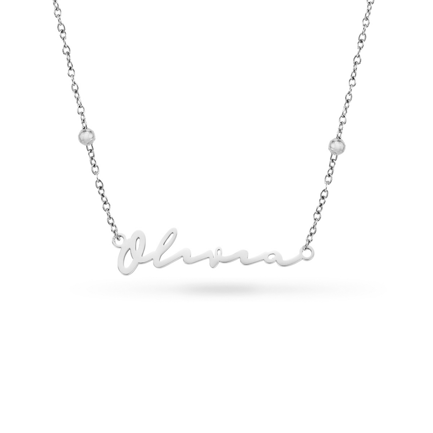 Discover your signature style with our iconic Name Jewelry, available in a variety of chains, colors, and designs. Crafted from rhodium-plated sterling silver, our timeless Signature Necklaces are built to last and completely unique to the wearer making for the perfect personalized gifts. Customize with up to 12 characters and choose your favourite chain to create a classic, bespoke Name Necklace that celebrates you or someone special.