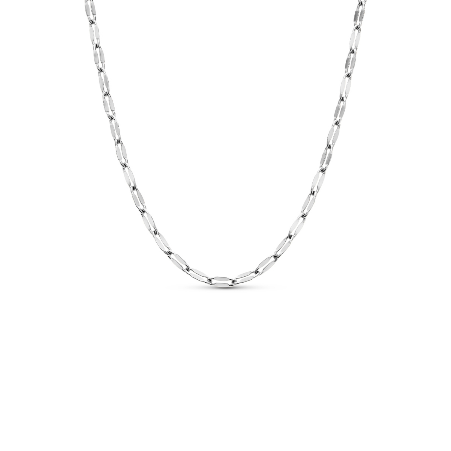 Your favorite paperclip chain with a twist. Featuring a modern diamond cut shape between each link, elevate any outfit with this chunky staple. It's made to last with luxurious 18k gold plating, so it can keep on shining with you. Top with any of our beautiful pendants to create your perfect piece, or style alone for an understated touch.