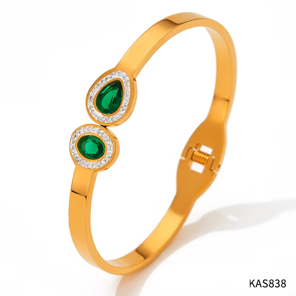 18K Gold Plated White Cubic Zirconia Setting Stainless Steel Band Bangles for Female